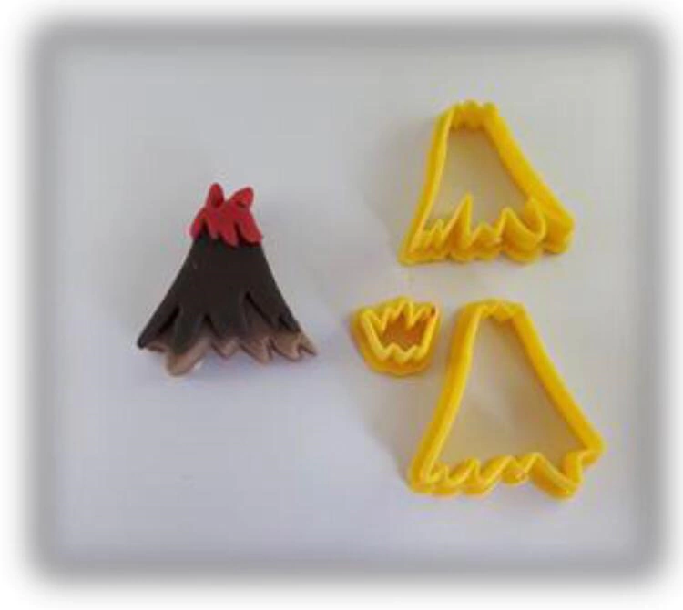 Cortador de plástico modelo vulcão Modelo com 3 peças para montar o vulcão Tamanho do vulcão: aproximadamente 4,0cm x 3,5cm