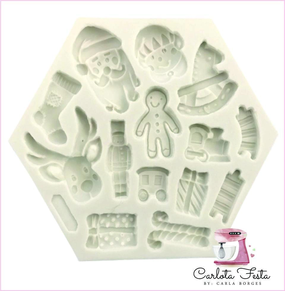 Molde de Silicone com 14 motivos diferentes Natalinos. Material: Silicone Nacional