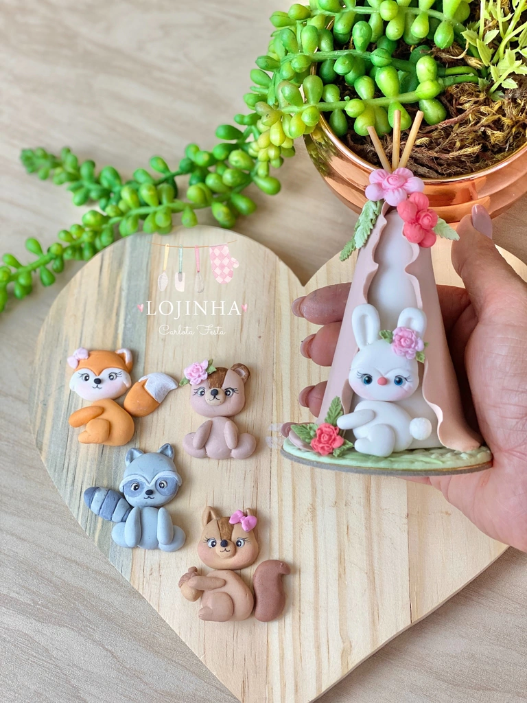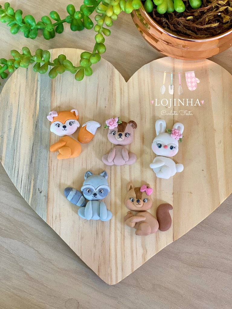 Animais: raposinha, guaxinim, coelhinho, esquilo e ursinho.