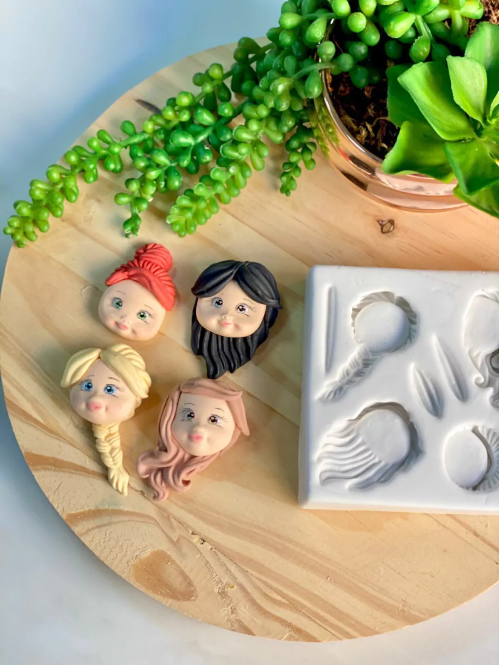 Molde de silicone com vários modelos de Cabelinhos e penteados.