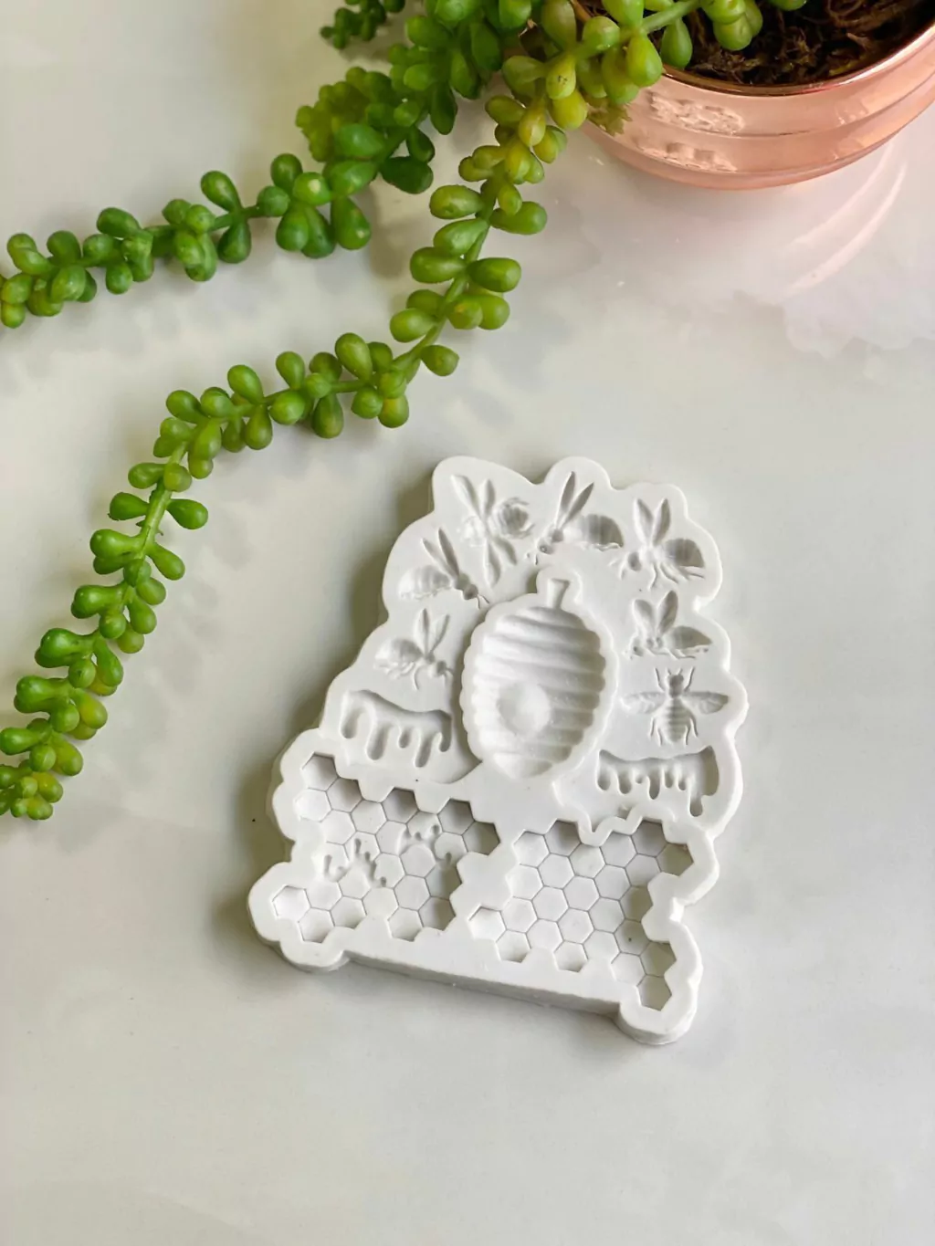 Kit com 7 abelhas variadas, 1 colmeia e 2 favos de mel