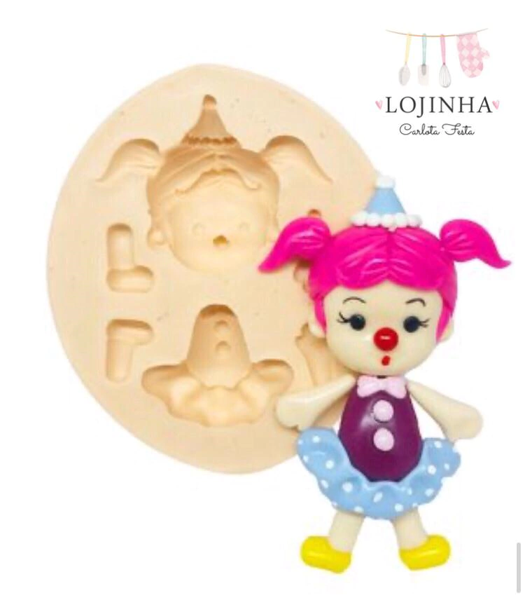 Molde de silicone modelo palhacinha de circo de saia Tamanho: 3,8x6,9cm aproximadamente