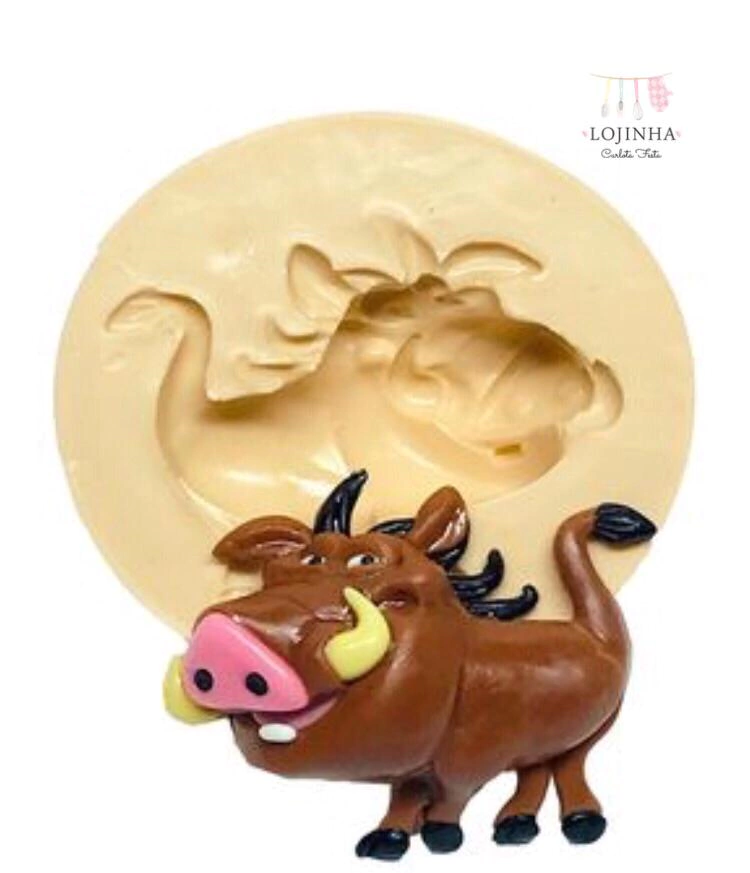 Molde de silicone modelo Pumba corpo inteiro - Rei Leão Tamanho do Pumba: 5 cm x 4,0 cm aproximadamente