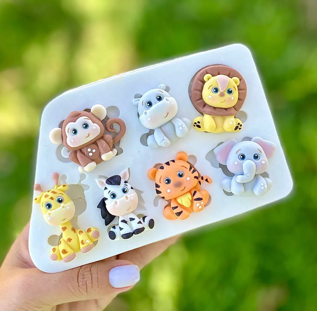 Molde de Silicone Animais do Safari pequenos - 7 animais