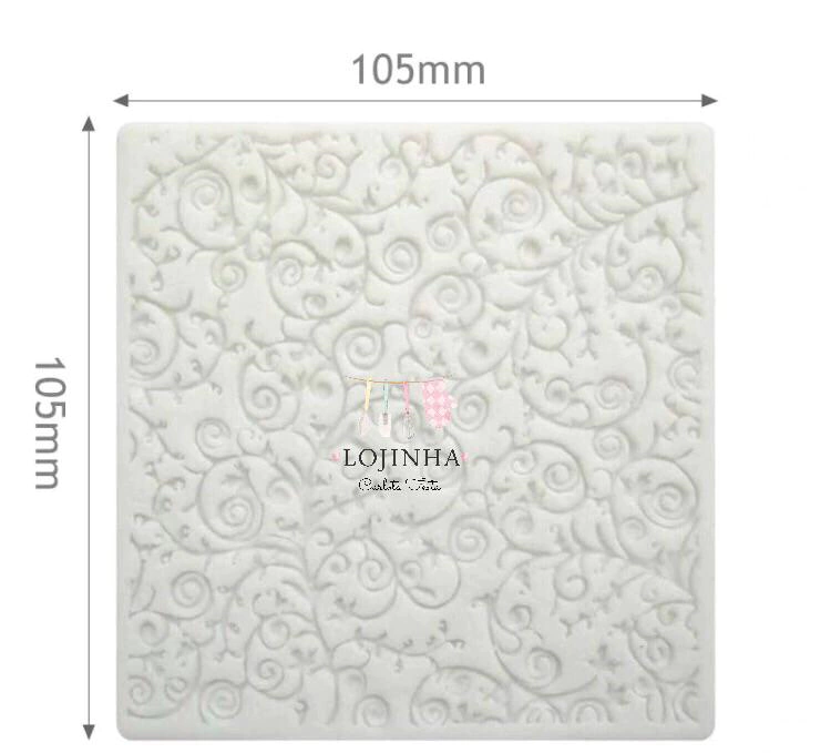 Placa de silicone com textura de flores e arabescos Tamanho da placa: 10,0cm x 10,0cm aproximadamente